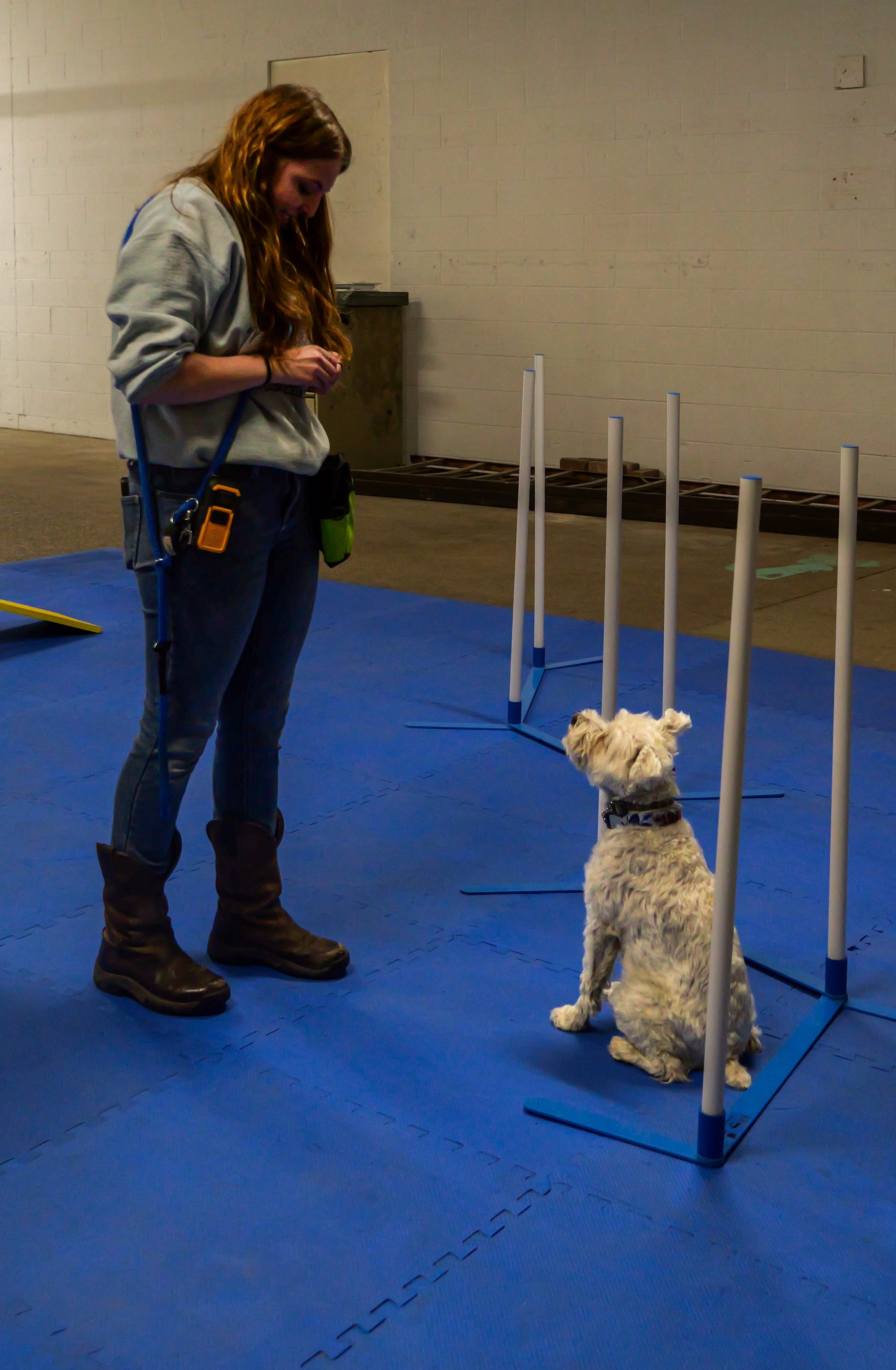 This is a good question! Especially for some of our smarter, higher-energy breeds, once they've nailed the weave poles, it may feel like they don't have much further to go! Our confidence courses build confidence every time your pup spends time there. We can adjust the hoop jump to be higher, providing a more difficult challenge, shrink the space between weave poles, and adjust the angle of our a-frame bridge to give your pup a greater challenge. Whether it's your pup's first visit to the course or their fifth, they'll get the same confidence boost and enrichment every time.